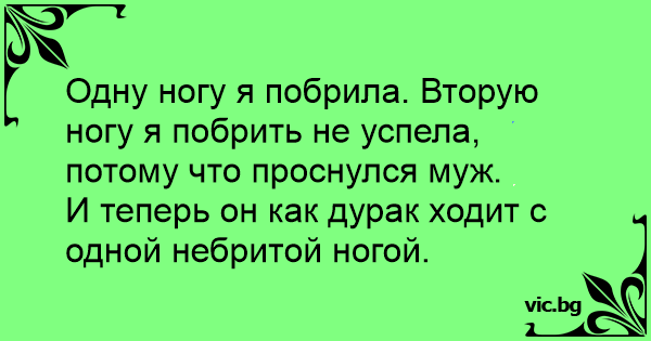 Одну ногу я побрила. Вторую ногу я побрить не успела, потому что проснулся муж.