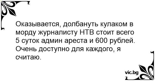 Оказывается, долбануть кулаком в морду журналисту НТВ стоит всего 5 суток админ ареста и 600 рублей.