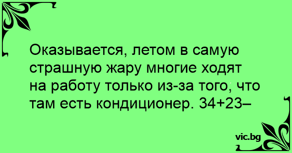 Оказывается, летом в самую страшную жару многие ходят на работу только из-за того, что там есть кондиционер. 34+23–