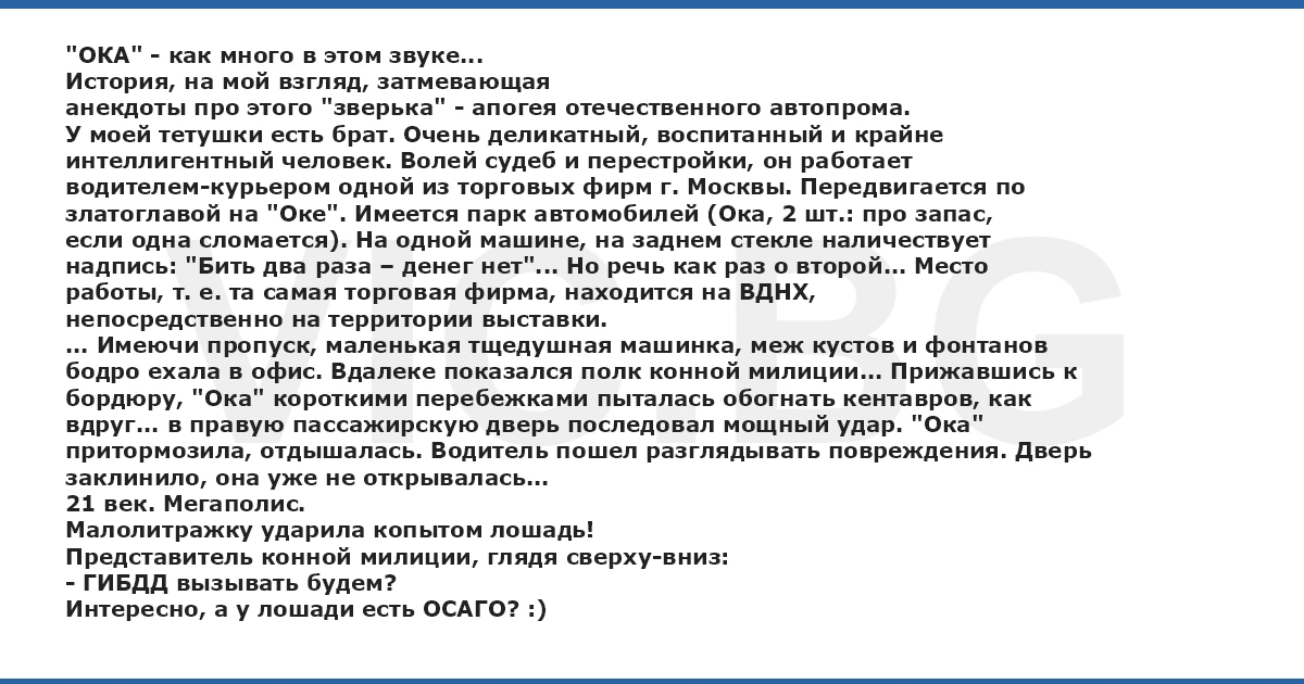 анекдоты про этого "зверька" - апогея отечественного автопрома.