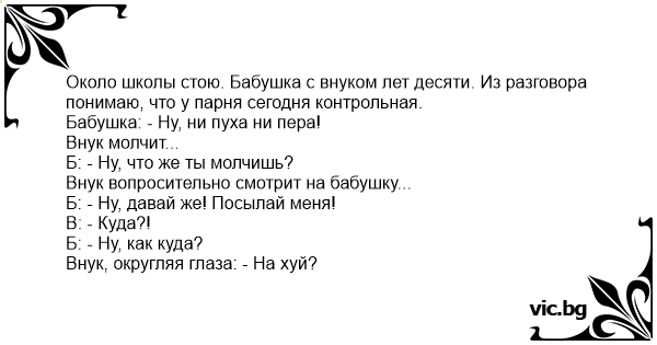 Бабушка: - Ну, ни пуха ни пера!