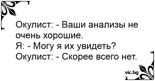 Окулист: - Ваши анализы не очень хорошие.