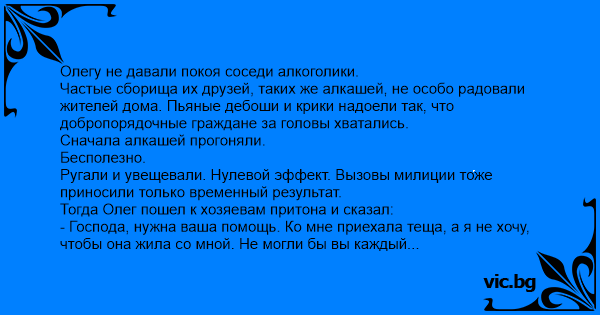 Олегу не давали покоя соседи алкоголики.