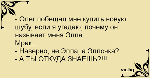 - Олег побещал мне купить новую шубу, если я угадаю, почему он называет меня Элла...