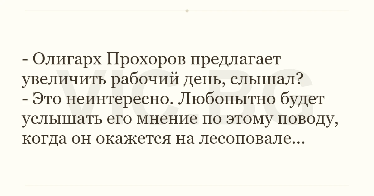 - Олигарх Прохоров предлагает увеличить рабочий день, слышал?