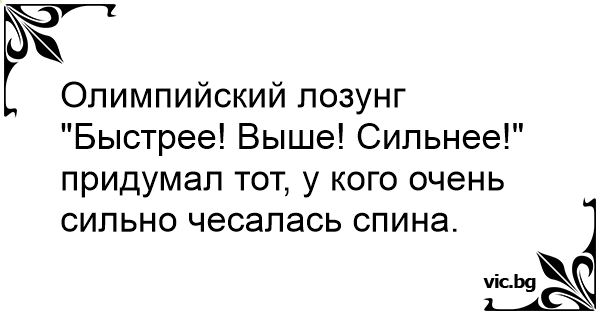 Олимпийский лозунг "Быстрее! Выше! Сильнее!" придумал тот, у кого очень сильно чесалась спина.