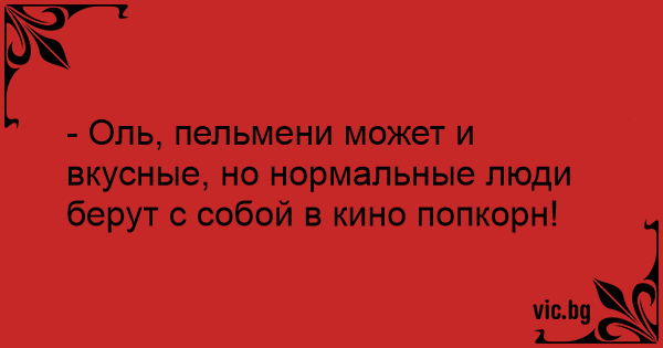 - Оль, пельмени может и вкусные, но нормальные люди берут с собой в кино попкорн!