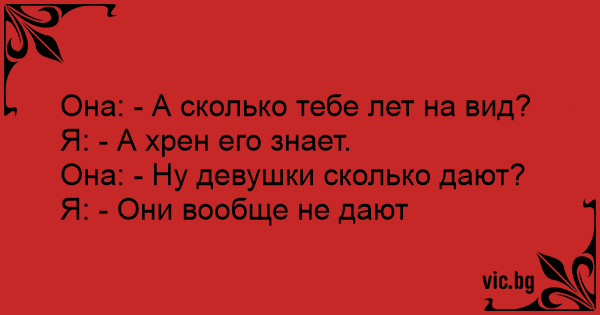 Она: - А сколько тебе лет на вид?