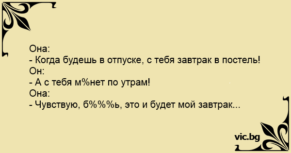 - Когда будешь в отпуске, с тебя завтрак в постель!
