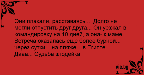 Они плакали, расставаясь... Долго не могли отпустить друг друга... Он уезжал в командировку на 10 дней, а она- к маме...