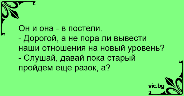 - Дорогой, а не пора ли вывести наши отношения на новый уровень?