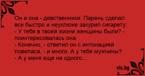 Он и она - девственники. Парень сделал все быстро и неуклюже закурил сигарету: