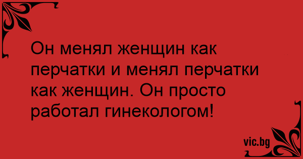 Он менял женщин как перчатки и менял перчатки как женщин. Он просто работал гинекологом!