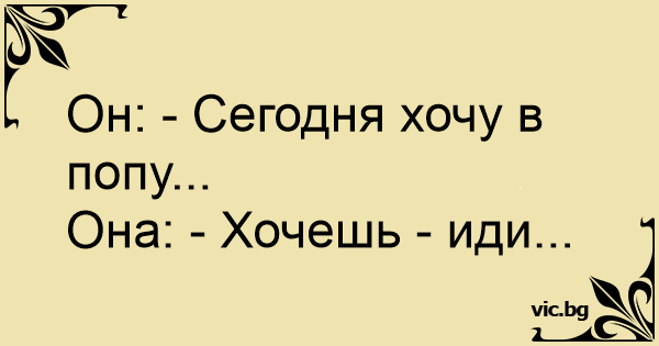 Он: - Сегодня хочу в попy...