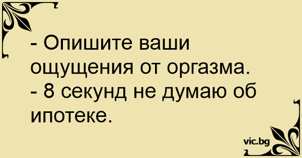 - Опишете какво усещате по време на оргазъм? - 8 секунди не мисля за ипотеката