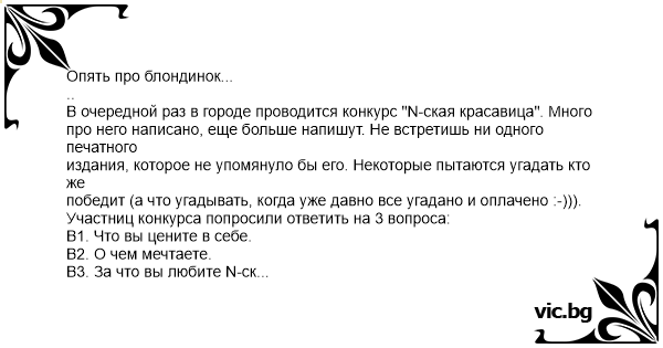 Вот ответы одной из претенденток (блондинка):