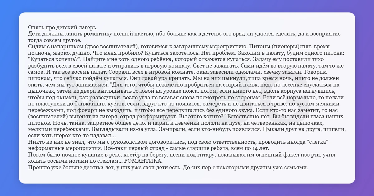 Опять про детский лагерь.