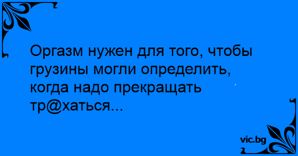Оргазм нужен для того, чтобы грузины могли определить, когда надо прекращать тр@хаться...