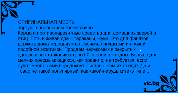 ОРИГИНАЛЬНАЯ МЕСТЬ Торгую в небольшом зоомагазине.