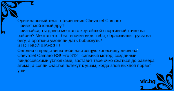 Оригинальный текст объявления Chevrolet Camaro Привет мой юный друг!