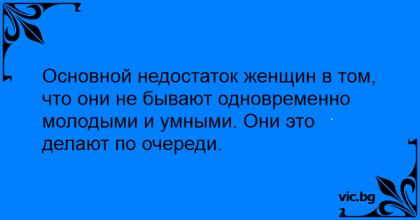 Основной недостаток женщин в том, что они не бывают одновременно молодыми и умными. Они это делают по очереди.