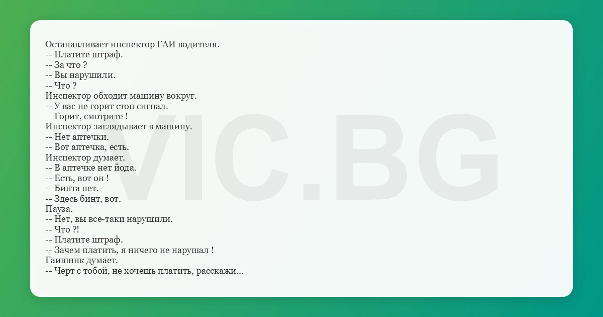 -- Ну ладно, не хочешь про ГАИшников, расскажи просто
