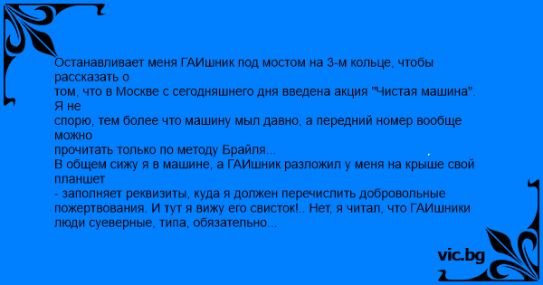 пожертвования. И тут я вижу его свисток!.. Нет, я читал, что ГАИшники