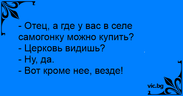 - Отец, а где у вас в селе самогонку можно купить?