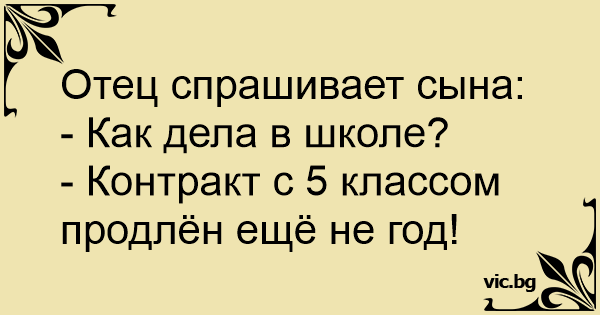Far: - åssen gikk det på eksamen i dag Petter? Petter: - kjempe fint! jeg har forlenget kontrakten med skolen et år til!!