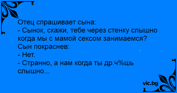 - Сынок, скажи, тебе через стенку слышно когда мы с мамой сексом занимаемся?