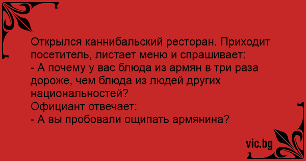 - А почему у вас блюда из армян в три раза дороже, чем блюда из людей других национальностей?