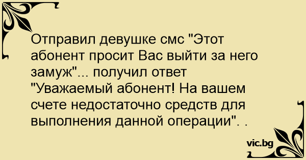 Отправил девушке смс "Этот абонент просит Вас выйти за него замуж"... получил ответ