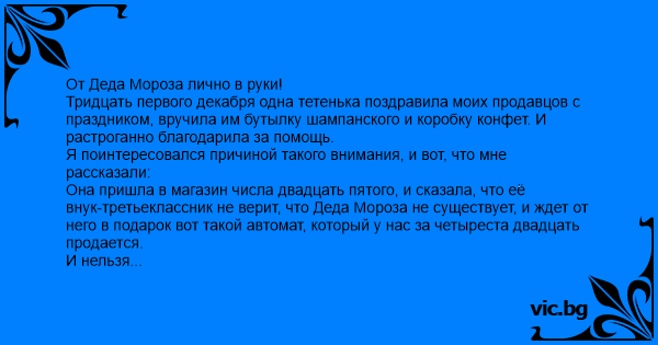 просил, получи в известном тебе магазине «Игрушки». Дед Мороз».