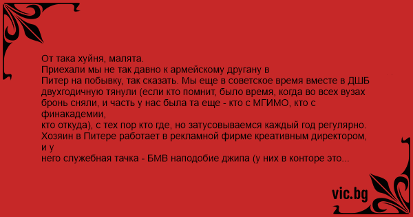 Приехали мы не так давно к армейскому другану в