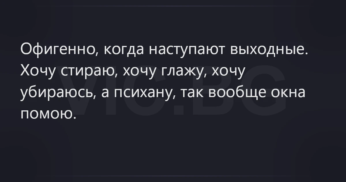 Офигенно, когда наступают выходные. Хочу стираю, хочу глажу, хочу убираюсь, а психану, так вообще окна помою.