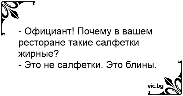 - Официант! Почему в вашем ресторане такие салфетки жирные?