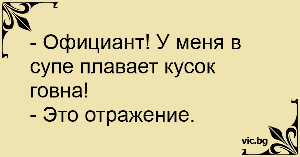 - Офіціант! У мене в супі плаває шматок лайна! - Це відображення.