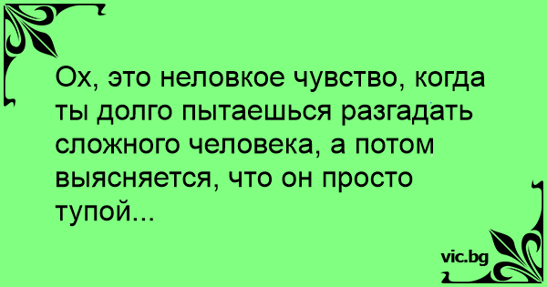 Ох, это неловкое чувство, когда ты долго пытаешься разгадать сложного человека, а потом выясняется, что он просто тупой...