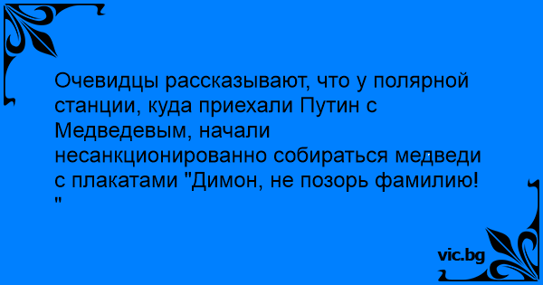 Очевидцы рассказывают, что у полярной станции, куда приехали Путин с Медведевым, начали несанкционированно собираться медведи с плакатами "Димон, не позорь фамилию! "