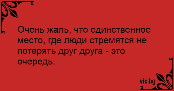 Очень жаль, что единственное место, где люди стремятся не потерять друг друга - это очередь.