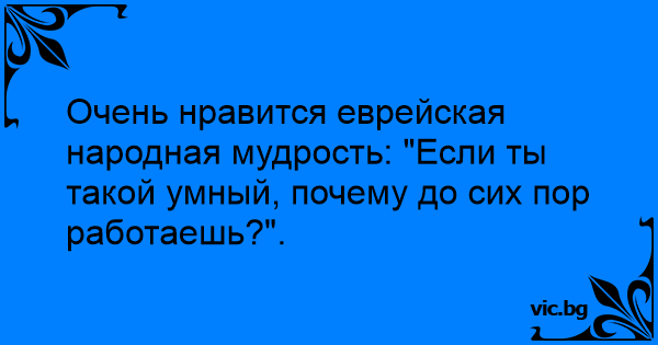 Очень нравится еврейская народная мудрость: "Если ты такой умный, почему до сих пор работаешь?".