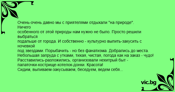 Очень-очень давно мы с приятелями отдыхали "на природе".
