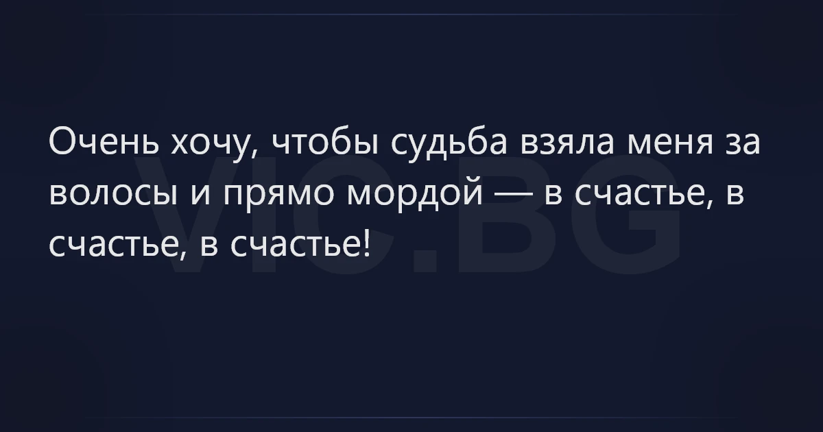 Очень хочу, чтобы судьба взяла меня за волосы и прямо мордой — в счастье, в счастье, в счастье!