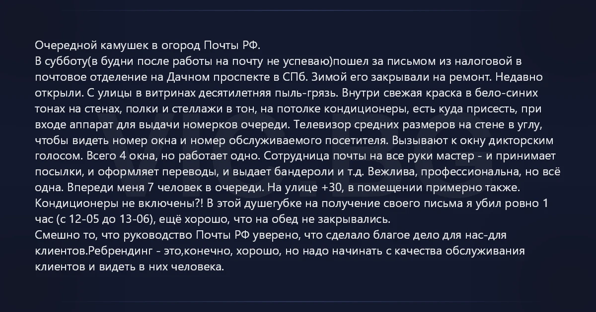 Очередной камушек в огород Почты РФ.