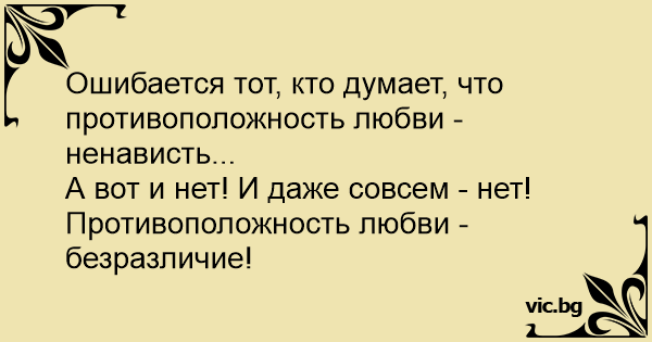 Ошибается тот, кто думает, что противоположность любви - ненависть...