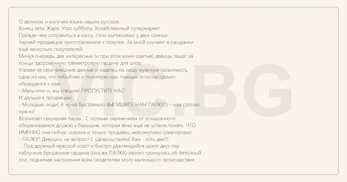 - ПАЛКУ? Девушки, не вопрос! С удовольствием! Вам - хоть две!!!