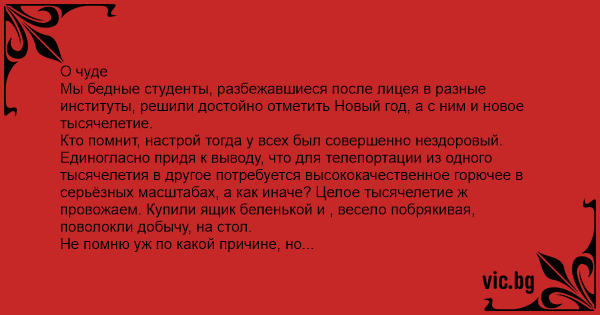 Единогласно придя к выводу, что для телепортации из одного тысячелетия в другое потребуется высококачественное горючее в серьёзных масштабах, а как иначе? Целое тысячелетие ж провожаем. Купили ящик беленькой и , весело побрякивая, поволокли добычу, на стол.