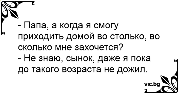 - Папа, а когда я смогу приходить домой во столько, во сколько мне захочется?