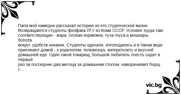 Папа мой намедни рассказал историю из его студенческой жизни.