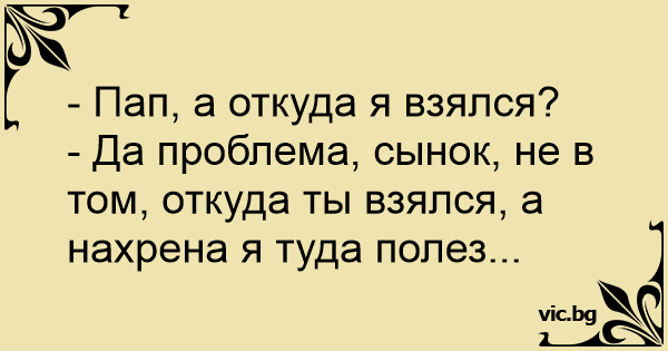 - Да проблема, сынок, не в том, откуда ты взялся, а нахрена я туда полез...